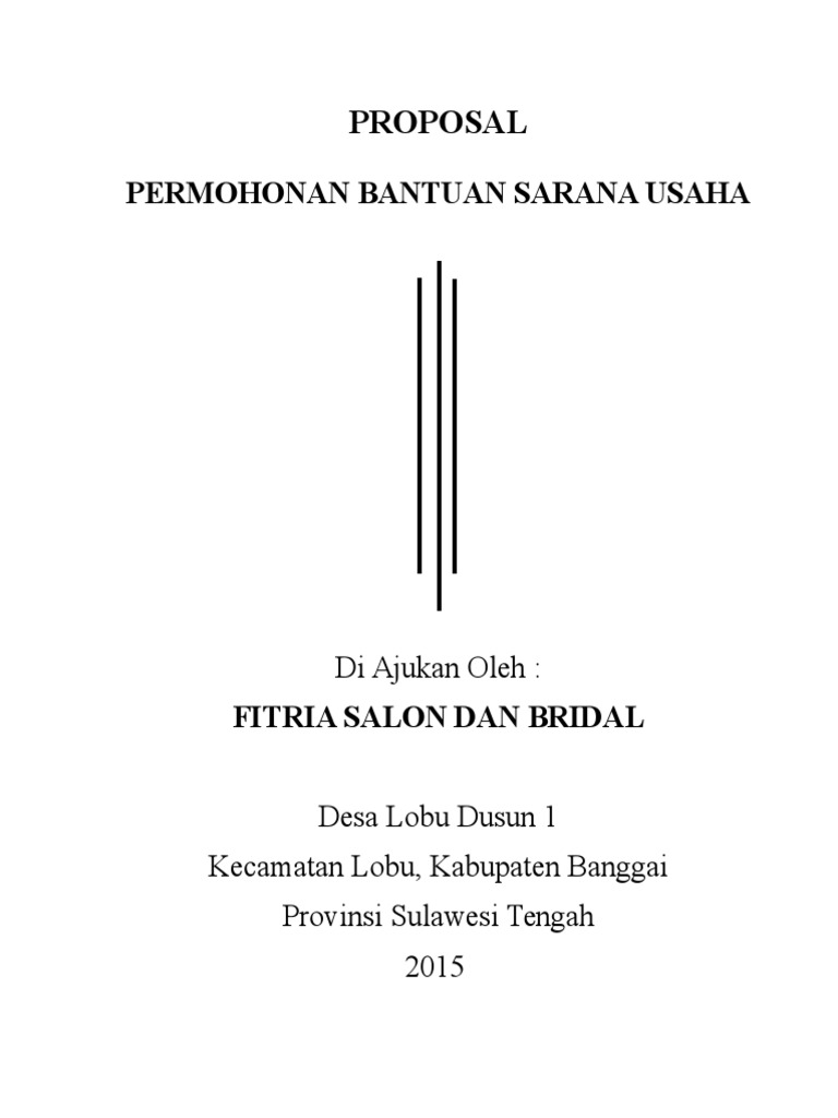 Ada tiga jenis Pinjaman Stafford Federal untuk dipilih: Pinjaman Stafford Federal Bersubsidi - Pinjaman ini berjangka panjang dan berdasarkan kebutuhan, dengan tingkat bunga rendah . Yang dimaksud dengan "bersubsidi" adalah pemerintah akan membayar bunga pinjaman selama siswa bersekolah atau ketika siswa meminta tenggang waktu atau penundaan. Apr 9, 2020 — PROPOSAL. PERMOHONAN BANTUAN DANA. PENGADAAN PERLENGKAPAN ALAT SALON. Oleh : KELOMPOK USAHA BERSAMA. “ ALAN SALON “. DESA MEKAR JAYA.