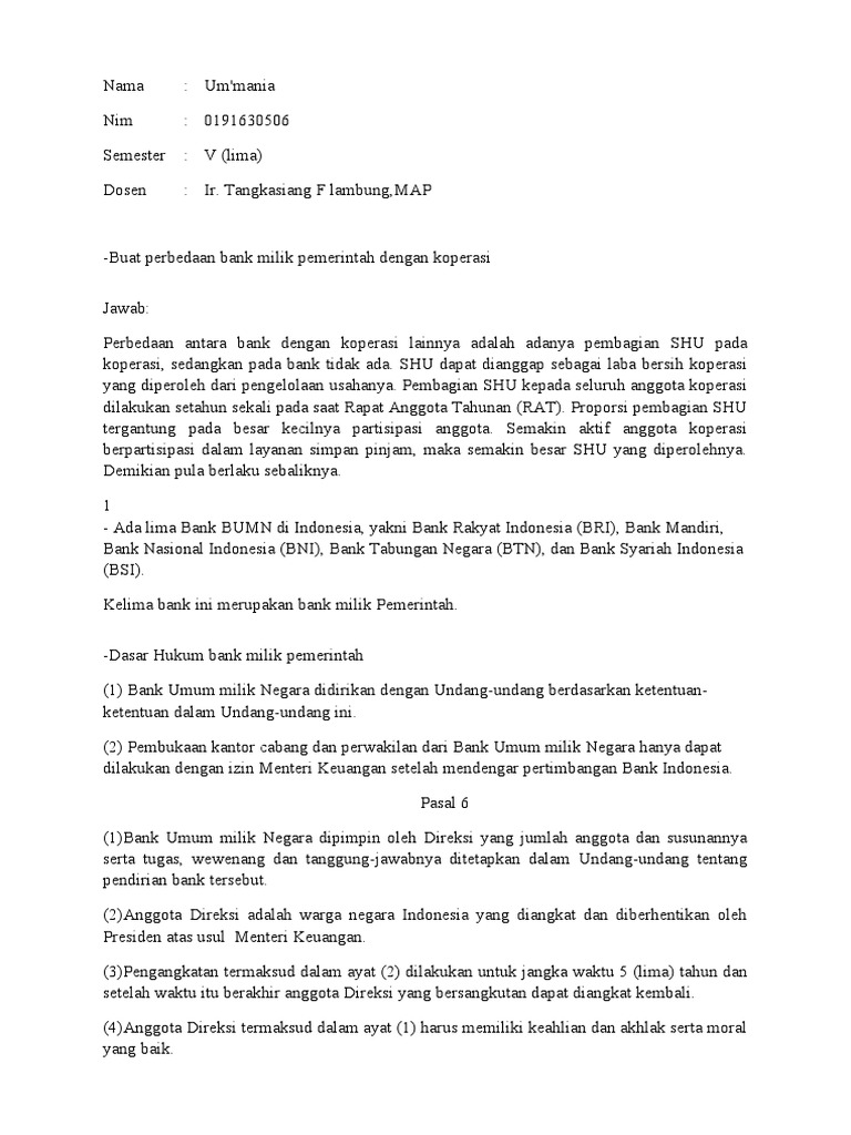 by IAA Idawati · Cited by 2 — Pengaruh Kinerja Keuangan terhadap Harga Saham pada Bank Umum Milik Pemerintah. Ida Ayu Agung Idawati, I. Gede Surya Pratama, Ia Cynthia Saisaria Mandasari. Nov 23, 2021 · Kecukupan modal Pemerintah daerah di bank daerahnya senilai Rp 3 trilliun itu, diatur dalam Peraturan Otoritas Jasa Keuangan (OJK) Nomor 12/PJOK.03 2020 tentang Konsolidasi Bank Umum. Pada pasal 8 Peraturan OJK Nomor 12/PJOK.03 tahun 2020, ayat 1) nya menyebutkan bank wajib memenuhi modal inti, minimum yang ditetapkan oleh Jasa Otoritas ... BANGKAPOS.COM, BANGKA-- Bank SumselBabel (BSB) Cabang Sungailiat bersama Pemerintah Daerah Kabupaten Bangka meresmikan dua warung milik masyarakat yang sebelumnya telah direnovasi melalui program CSR Bedah Warung, Sabtu (6/11/2021) di Sungailiat, Bangka. Sebelum itu, pihak Bank SumselBabel ... Setelah berdirinya NHM, bermunculan bank-bank lainnya. Pada zaman kemerdekaan, bank-bank tersebut dinasionalisasikan menjadi bank umum milik negara, seperti Bank Rakyat Indonesia, Bank Dagang Indonesia, dan Bank Ekspor-Impor Indonesia. Selain itu, pemerintah Indonesia mendirikan bank baru yaitu Bank Negara Indonesia.
