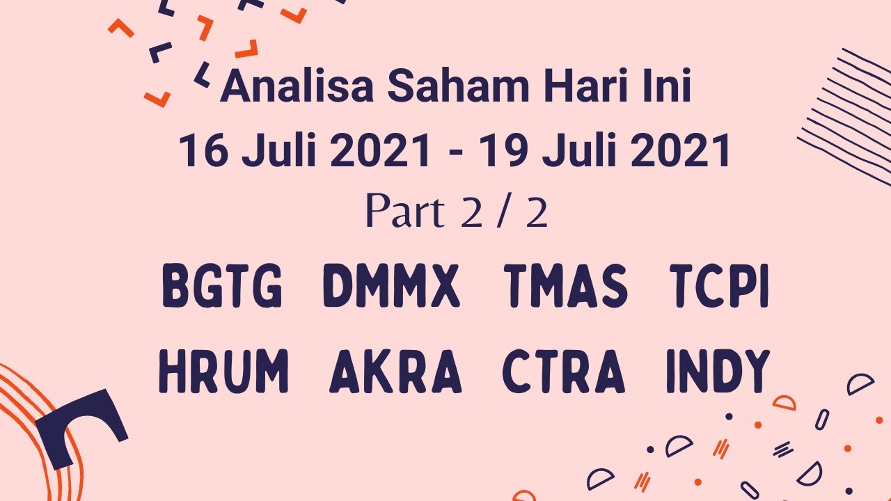 Analisa Saham Hari Ini Bgtg Dmmx Tmas Tcpi Hrum Akra Ctra Indy 16 Juli 2021 19 Juli 2021 Part 2 2 Youtube
