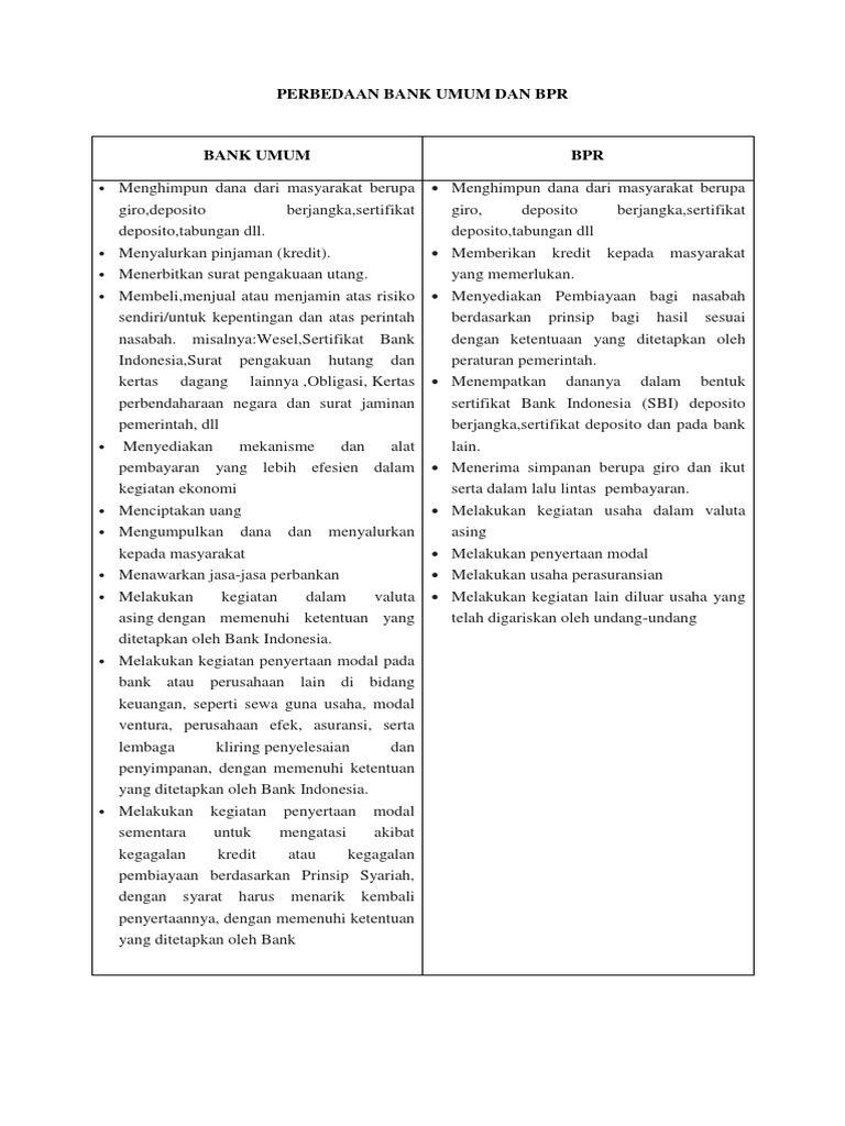 Bpr dan bank umum adalah