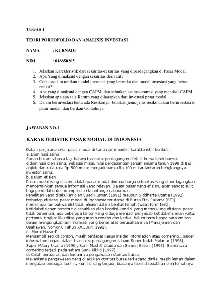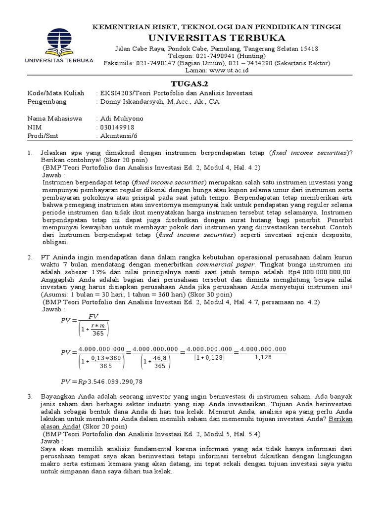 Tugas 1 Teori Portofolio Dan Analisis Investasi Docx Tugas Tutorial Ke 1 Kode Nama Matakuliah Eks14203 Teori Portofolio Dan Analisis Investasi Nama Course Hero