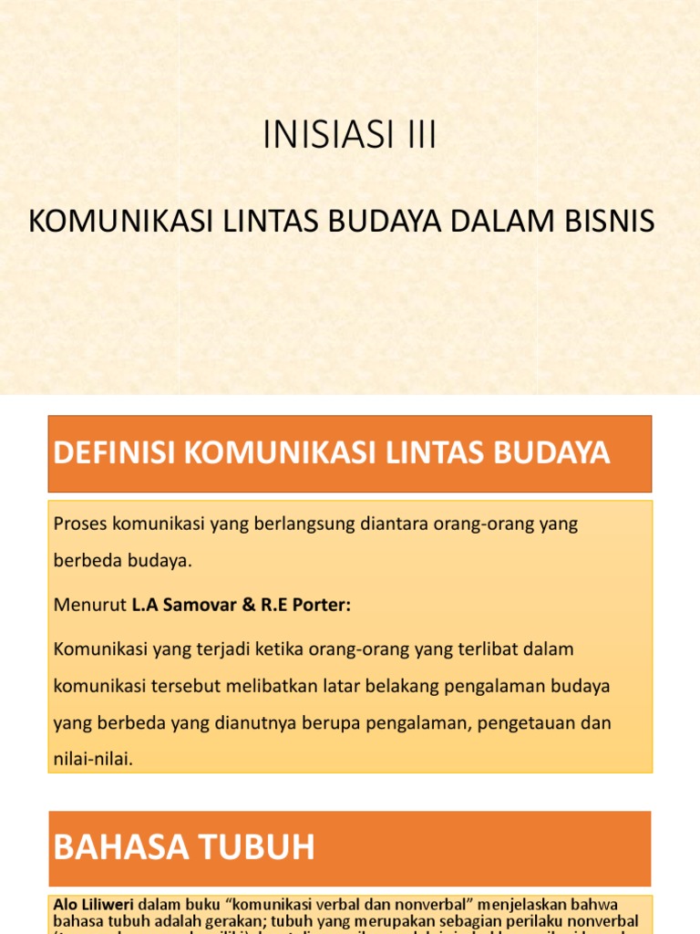 A. Pengertian Komunikasi Bisnis Lintas Budaya Komunikasi bisnis lintas budaya adalah komunikasi yang digunakan dalam dunia bisnis baik komunikasi verbal maupun nonverbal dengan memperhatikan faktor-faktor budaya di suatu daerah, wilayah atau negara. Jurnal Ilmu Budaya (Journal of Cultural Sciences) is a scientific journal published by the French Literature Department of the Faculty of Cultural Sciences, Hasanuddin University, p-ISSN: 2354-7294 and e-ISSN: 2621-5101. JIB was officially published twice in publications, the period of June and December. A. Pengertian Komunikasi Bisnis Lintas Budaya Komunikasi bisnis lintas budaya adalah komunikasi yang digunakan dalam dunia bisnis baik komunikasi verbal maupun nonverbal dengan memperhatikan faktor-faktor budaya di suatu daerah, wilayah, atau negara.