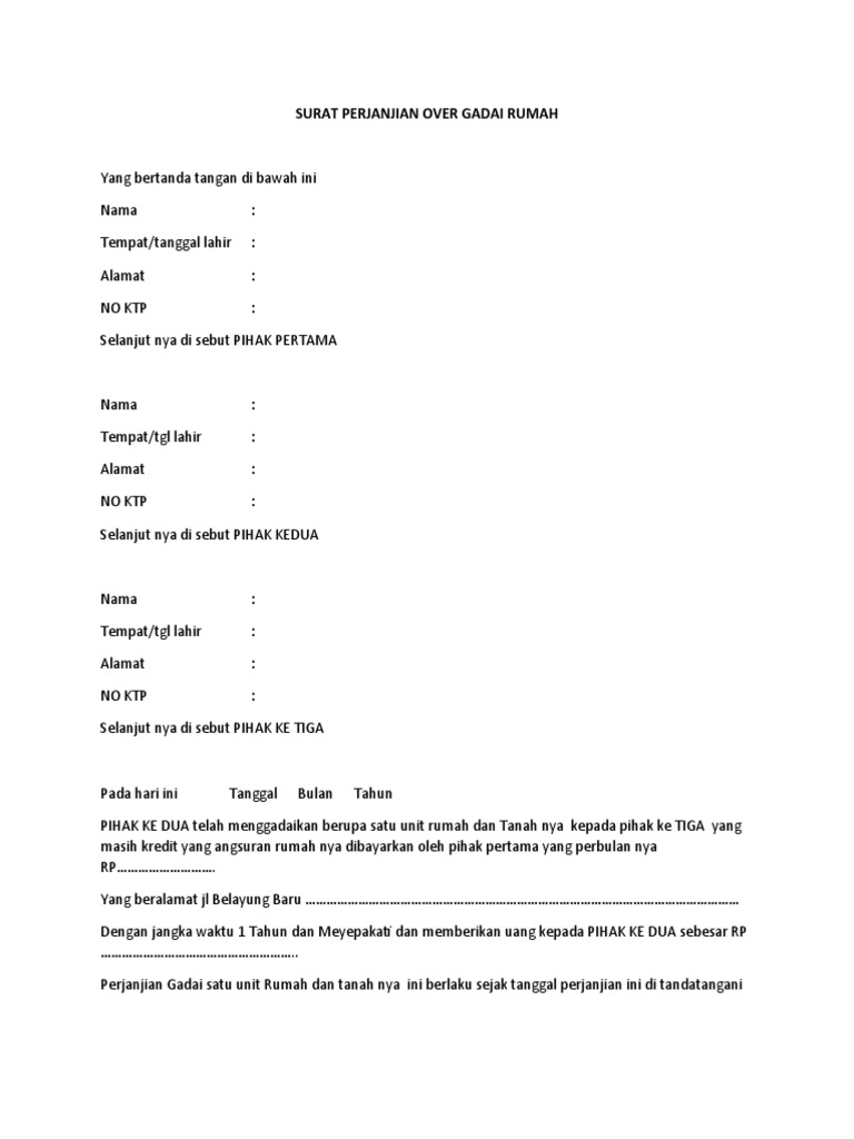 Contoh Surat Pernyataan Gadai Rumah - Kali ini kami ingin mengunggah dokumen yang mirip dengan dokumen tersebut yaitu surat perjanjian untuk menggadaikan rumah. Yang bertanda tangan di bawah ini. Perjanjian gadai ini dilangsungkan untuk jangka waktu tahun terhitung sejak dan berakhir tanggal. 6 hal penting dalam kontrak surat perjanjian sewa rumah.