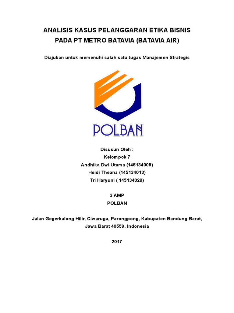 Jurnal pelanggaran etika bisnis pdf. Dari kajian yang dilakukan di temukan bahwa telah terjadi pelanggaran etika bisnis dari kebijakan yang dilakukan oleh manajemen PT DI dalam rentang waktu 1995 - 2007. JURNAL ETIKA BISNIS. Hanie Kurniawati. Download PDF. Download Full PDF Package ... Dengan munculnya berbagai masalah pelanggaran etika dalam bisnis menyebabkan banyaknya tuntutan untuk menerapkan etika kegiatan bisnis, dengan diterapkannya etika dalam bisnis akan meminimalisir hal-hal negatif yang tidak diinginkan, dan secara tidak lansung ... Abstrak: Etika Bisnis: Konsep, Teori dan Tinjauan Kasus PT Dirgantara Indonesia (1960‐2007). Artikel ini bertujuan untuk mengkaji isu etika bisnis menggunakan konsep teori utama yang digunakan untuk mengukur tingkat pelanggaran etika yang terjadi. Kajian dalam artikel ini menggunakan kasus yang terjadi di PT Dirgantara akan mendiskusikan pelanggaran etika dalam praktik bisnis PT Alpen Food Industry dan mengelaborasi pentingnya corporate ethics sebagai pagar bisnis perusahaan. Selanjutnya tulisan ini akan diklasifikasikan dalam beberapa sub bahasan. Pertama, pendekatan dimensi etika (perilaku etis) dalam korporasi. Kedua, dinamika dalam corporate ethics dan humas PT Alpen Food Industry. Ketiga, bentuk praktik ...