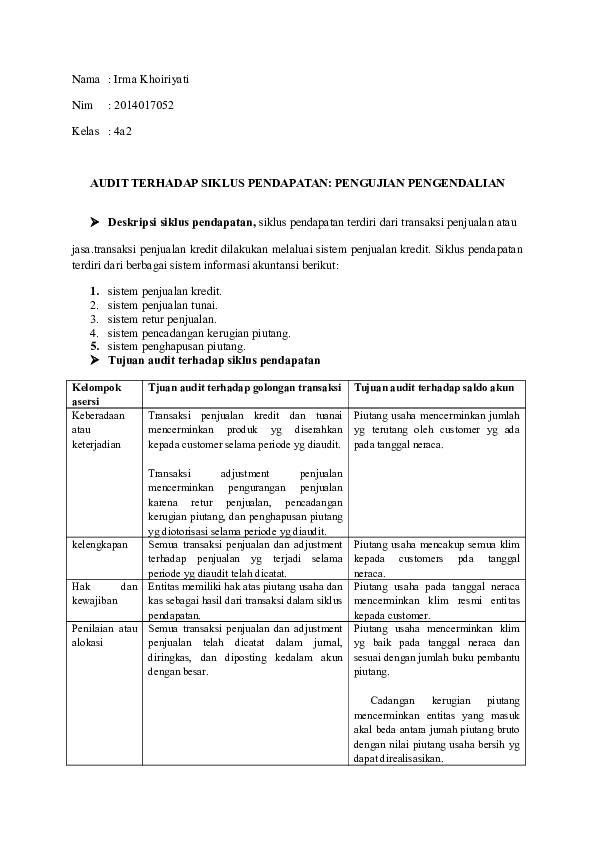 Siklus pendapatan penjualan dan penerimaan kas 1. MAKALAH SIKLUS PENDAPATAN PENJUALAN dan PENERIMAAN KAS Makalah ini disusun guna melengkapi tugas Sistem Informasi Akuntansi yang di ampu oleh bapak Riski Maulidi Disusun Oleh : 1. Siti Nurfajriyah (2016100040) 2. Elsani Sarah (2016100055) 3. Dyan Ulfa(2016100057) 4.