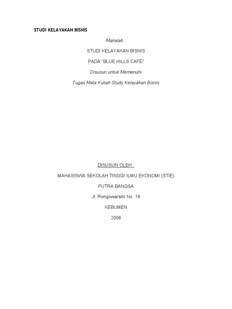 Makalah Laporan Studi Kelayakan Bisnis - Mathlaul Khairiyah Doc Rencana Usaha Dan Studi Kelayakan Usaha Ria Ria Academia Edu . 23 october 2019 632 berikut seputar informasi dan pembahasan tentang kelayakan bisnis restoran serta mengenai makalah studi tersebut tips ini adalah beberapa tutorial lain yang berhubungan dengan kelayakan bisnis restoran makalah studi yang dapat dilakukan dengan mudah dan gampang.