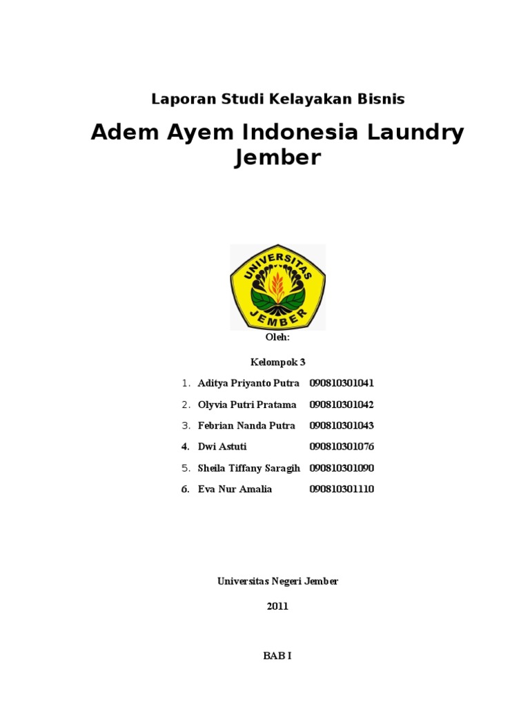 STUDI KELAYAKAN BISNIS ALL STAR LAUNDRY - Academia.edu Didalam makalah ini dijelaskan Studi Kelayakan Bisnis laundry yaitu "All Star Laundry". Dalam penyusunan makalah ini penulis menyadari sepenuhnya bahwa masih banyak terdapat kekurangan-kekurangan dan kesalahan-kesalahan.Oleh karena itu penulis amat mengharapkan kritik serta saran yang bersifat membangun dari pembaca demi kesempurnaan ...