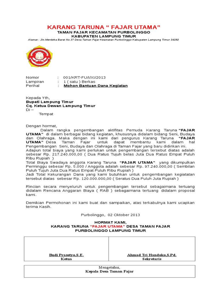 Contoh Surat Permohonan Bantuan Dana Kegiatan Karang Taruna 25 Contoh Surat Permohonan Bantuan Dana Barang Dll Contoh Surat. Karang Taruna Liang Langit. Contoh Surat Permohonan Bantuan Dana Dan Proposal Kegiatan Hut Ri. Proposal Permohonan Perlengkapan Olahraga Karang Taruna Bhakti Mandiri. Contoh Proposal Karang Taruna Pengajuan Dana Ke Desa Berbagi Contoh Proposal.