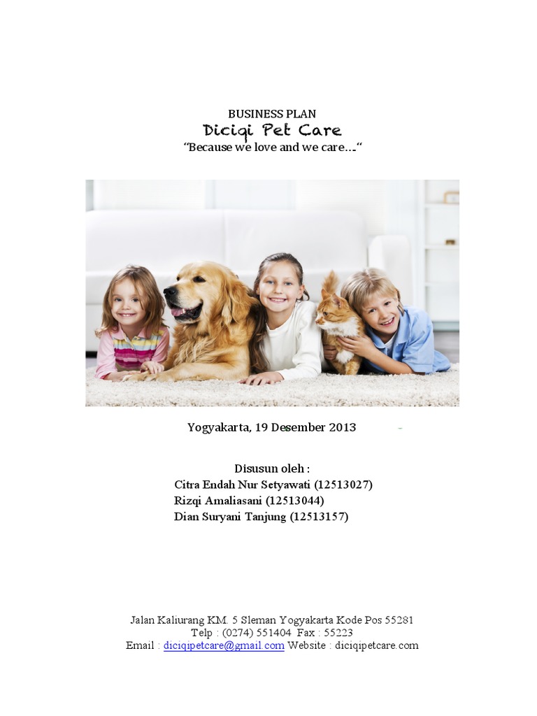 Usaha Petshop | LEMBAR EDU Usaha pet shop bukan hanya tempat penjualan perlengkapan hewan peliharaan, biasanya pet shop dilengkapi dengan usaha penitipan hewan, dan perawatan hewan peliharaan. Itulah yang dapat admin bagikan mengenai contoh proposal bisnis plan pet shop. Source: waralabaku.com RENCANA BISNIS DE CARE PET SHOP PROYEK AKHIR - PDF Free ... With this amount of pets, therefore the shop will have potential market with the total of Rp 644.079.000,‐ in one year. The uniqueness of De' care pet is that the shop understand the need of Batunungal community. With the investment of Rp 90.000.000,‐ De' care pet have an IRR of 27,39% and will reach payback period in two year and seven ... PDF Sistem Informasi Penjualan Berbasis Web Pada Pet Shop Pet shop is a place that sells and supplies for pet and also the pet itself. Nowadays, pet shop endeavor is rapidly developing. For pet shop to interest pet lovers, then it is compulsory for a pet shop to have some plus values. Taken this into consideration, then a website for pet shop is required. By Selijwy: Bisnis Plan Pet Shop " Kitty Shop Bisnis yang akan Saya jalankan Adalah Bisnis Pet Shop Yang akan di beri nāma Kitty Shop. Kitty Toko akan melakukan Bisnis Model DENGAN one stop service, artinya SEMUA JENIS Pelayanan Terhadap Kebutuhan Hewan akan dilayani guna Menambah pemasukan, memperluas sasaran, KONSUMEN Dan profesional gambar menciptakan.