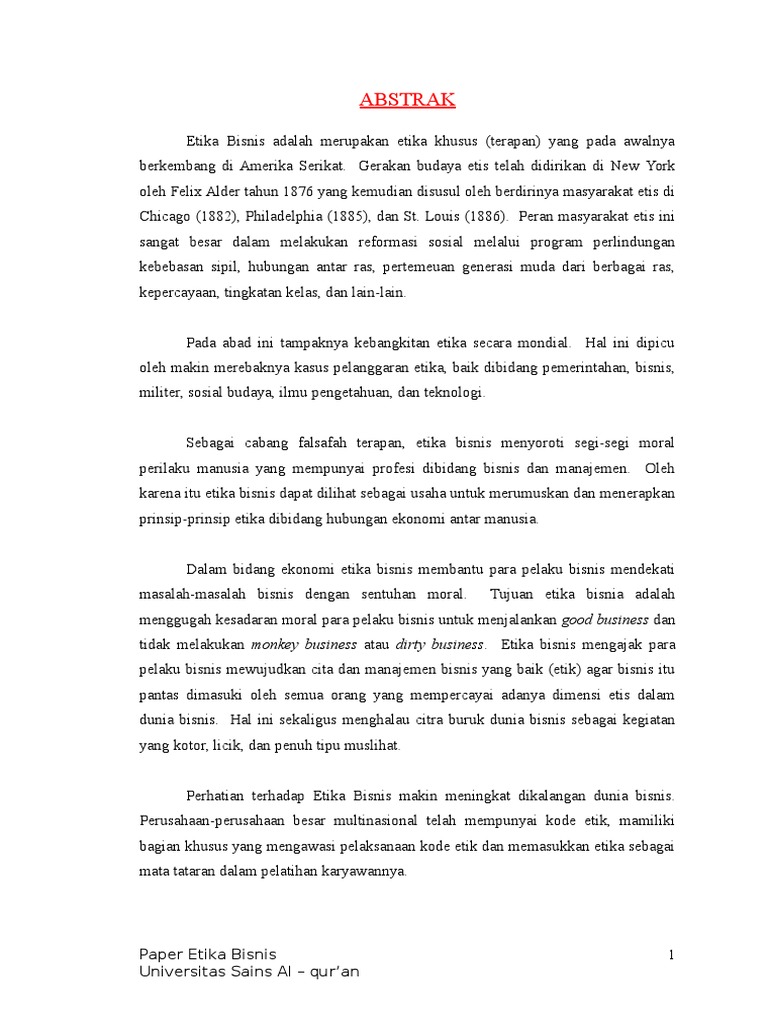 Apa itu Etika Bisnis? Berikut Pengertian, Prinsip, Manfaat 10 Jan 2022 — Etika bisnis merupakan studi tentang kebijakan dan praktik bisnis yang sesuai dengan subjek bisnis atau suatu hal dalam bisnis yang berpotensi ... My Blog: Etika Komunikasi Bisnis - Fungsi - Tujuan Etika bisnis dapat didefiniskan sebagai prinsip-prinsip kode tertulis maupun tidak tertulis dan nilai-nilai yang membuat keputusan serta tindakan dalam sebuah perusahaan. Etika bisnis telah menjadi topik hangat diskusi sejak dimulainya abad 21. Beberapa diskusi etika bisnis merujuk pada perilaku etika bisnis dan prakteknya dalam pasar. Etika bisnis - Wikipedia bahasa Indonesia, ensiklopedia bebas Etika bisnis adalah tindakan yang dilakukan dalam kegiatan bisnis dengan tidak menyalahi aturan organisasi dan masyarakat. Dalam etika bisnis, setiap kegiatan harus dalam keadaan wajar dan sesuai dengan norma dan etika yang berlaku. Setiap tindakan bisnis harus dilandasi oleh moralitas dan prinsip kebenaran yang disertai dengan tanggung jawab. (PDF) Etika Bisnis dan Profesi - Academia.edu Pengertian Etika Bisnis Menurut penulis bahwa etika bisnis adalah suatu tindakan dalam berbisnis yang memperhatikan dan menggunakan aspek norma, moralitas, dan agama. Dengan memperhatikan pengertian tersebut ada beberapa kata kunci yang penting, yakni berbisnis, norma, moralitas, dan agama.