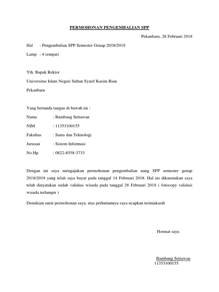 Contoh Surat Permohonan Pengembalian Uang - Contoh Surat Kumpulan Gambar Contoh Surat Permohonan Pengembalian Uang Terlengkap 2019. Contoh Surat Permohonan Pengembalian Uang have an image associated with the other.Contoh Surat Permohonan Pengembalian Uang In addition, it will include a picture of a sort that may be seen in the gallery of Contoh Surat Permohonan Pengembalian Uang. The collection that comprising chosen picture and the best amongst others.