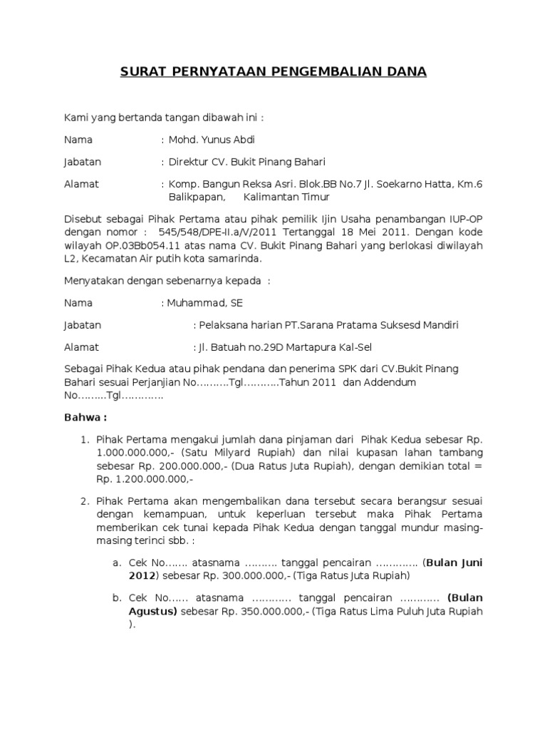 Contoh Surat Pernyataan Pengembalian Dana Kumpulan berbagai macam contoh surat untuk memudahkan kalian